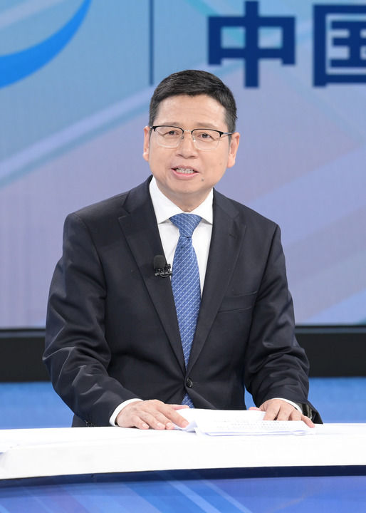 外交部领事司副司长童学军在第十七期“中国经济圆桌会”大型全媒体访谈节目录制现场发言。新华社记者 李贺 摄