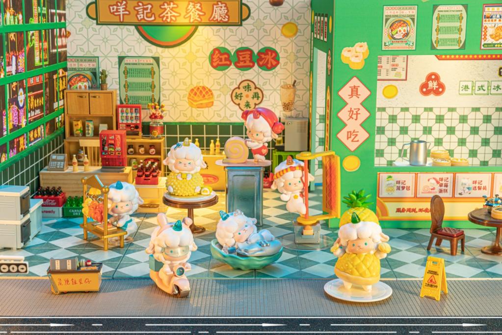 羊角呈虾饺褶皱造型,托盘设计成蒸笼纹理,底座能播放粤语早茶叫卖声……位于广州北京路步行街的一家潮玩店内,原创IP“卷卷羊”将羊仔形象与当地美食元素融合,一经上市便广受欢迎。