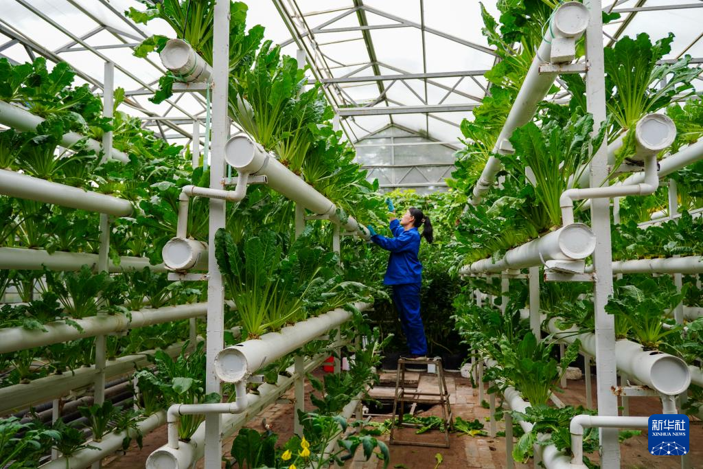 这是在寿光蔬菜高科技示范园内展示的蔬菜立体化先进种植模式(5月23日摄)。 新华社记者 徐速绘 摄