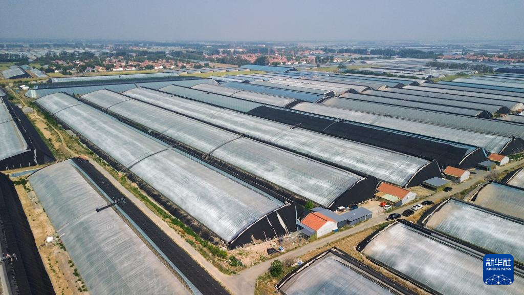 这是位于山东省寿光市的大棚(5月24日摄,无人机照片)。 新华社记者 徐速绘 摄