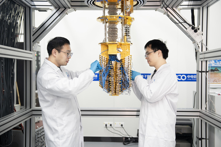 中电信量子集团研发人员正在调试“天衍-504”超导量子计算机。(中电信量子集团供图)