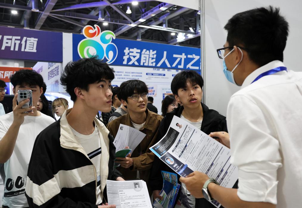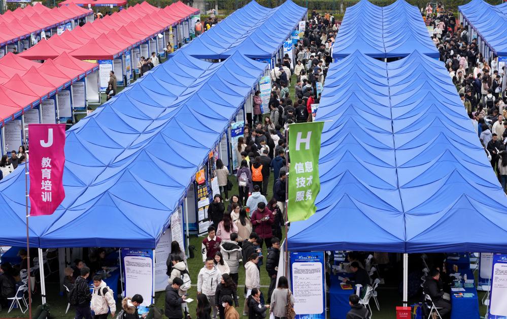 5月,“千校万企供需对接会”(连云港专场)暨江苏省2025届高校毕业生就业“百日冲刺”行动在江苏连云港举行。线下百余家企业和线上千余家企业共提供超1万个工作岗位,涵盖生物医药、集成电路、智能制造等行业。新华社记者 毛俊 摄