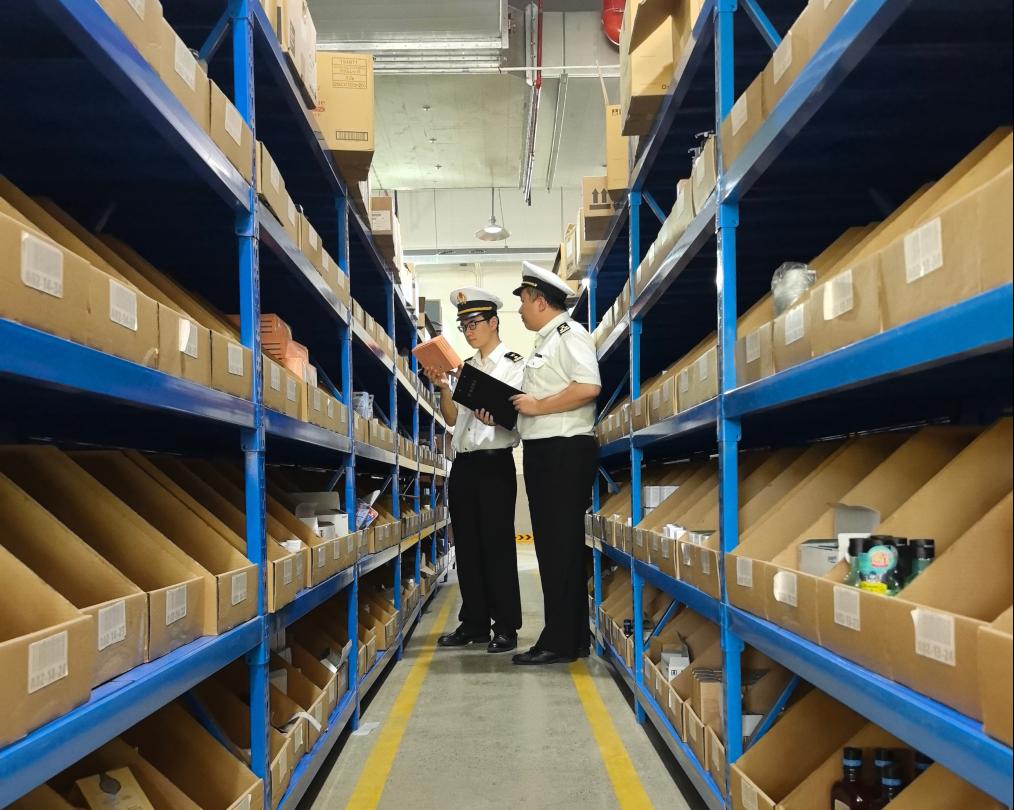 图为上海海关所属奉贤海关关员对跨境电商企业开展监管服务。(上海海关供图)