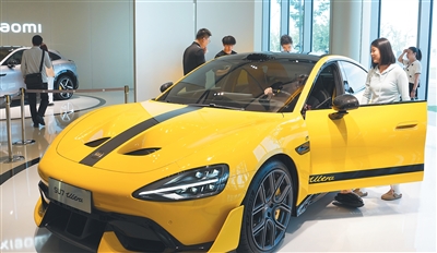 参观者在北京小米汽车工厂的体验中心了解SU7 Ultra汽车。新华社记者 郑焕松摄