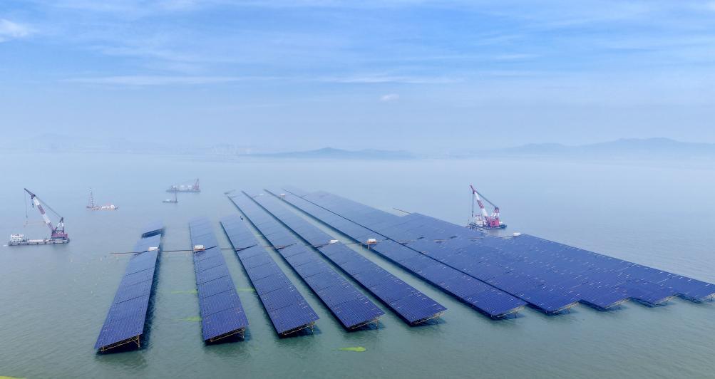 青岛市即墨区鳌山湾海域的海上光伏项目区(7月3日摄,无人机照片)。新华社记者李紫恒摄