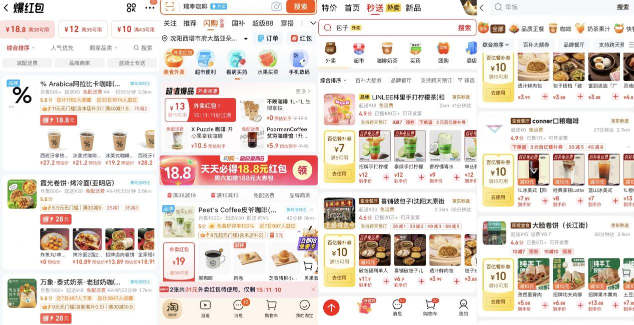 各外卖平台截图