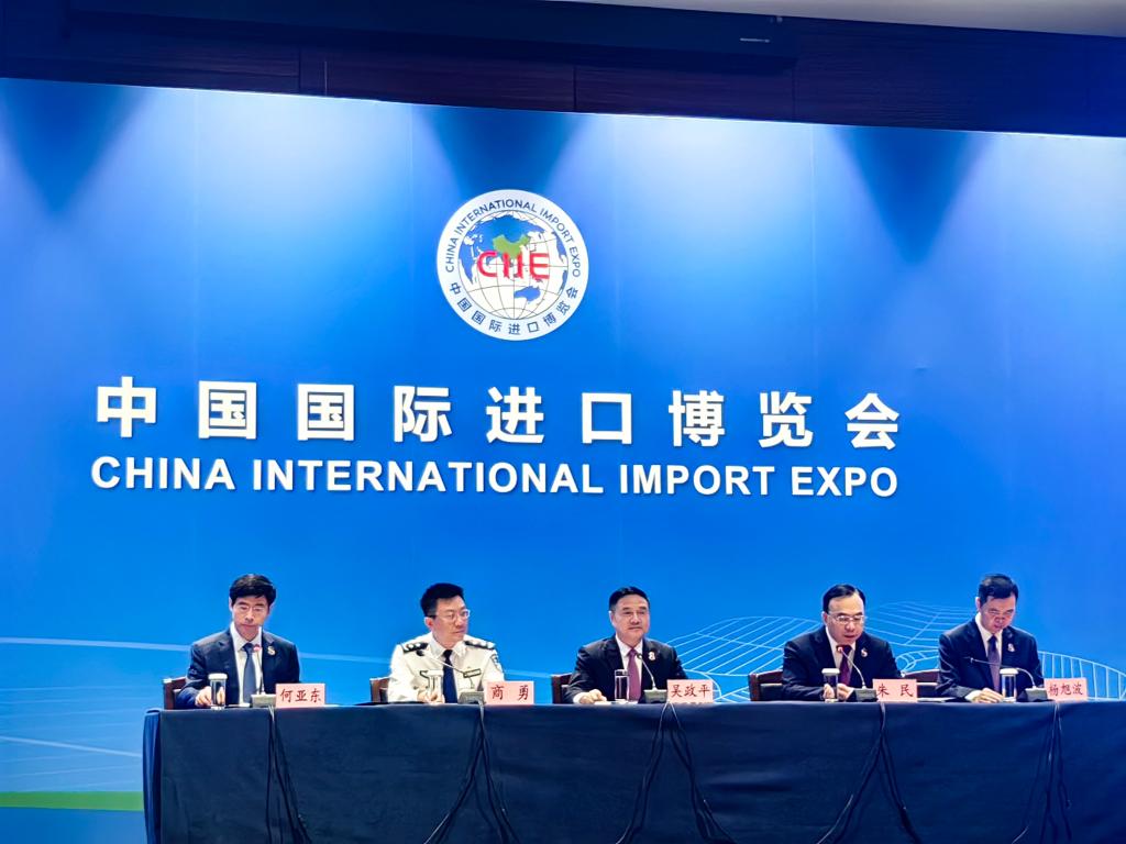 7月25日举行的第八届中国国际进口博览会新闻通气会现场。新华社记者 周蕊 摄