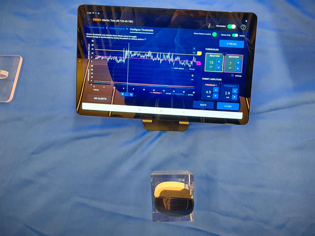 在7月25日举行的第八届进博会展前供需对接会上,美敦力带着计划在本届进博会上“亚太首展”的闭环可充电脊髓神经刺激系统Inceptiv亮相。“个头”不大可以放在手心里的这一展品,却能够“倾听身体发出的声音”,感知不同动作下脊髓生物信号的变化并实时自动调整刺激,以帮助慢性疼痛患者获得更加持续一致的解决方案。