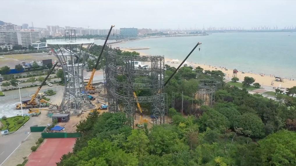 在山东,日照市岚山区多岛海风景区新增的水滑道项目正加快施工。