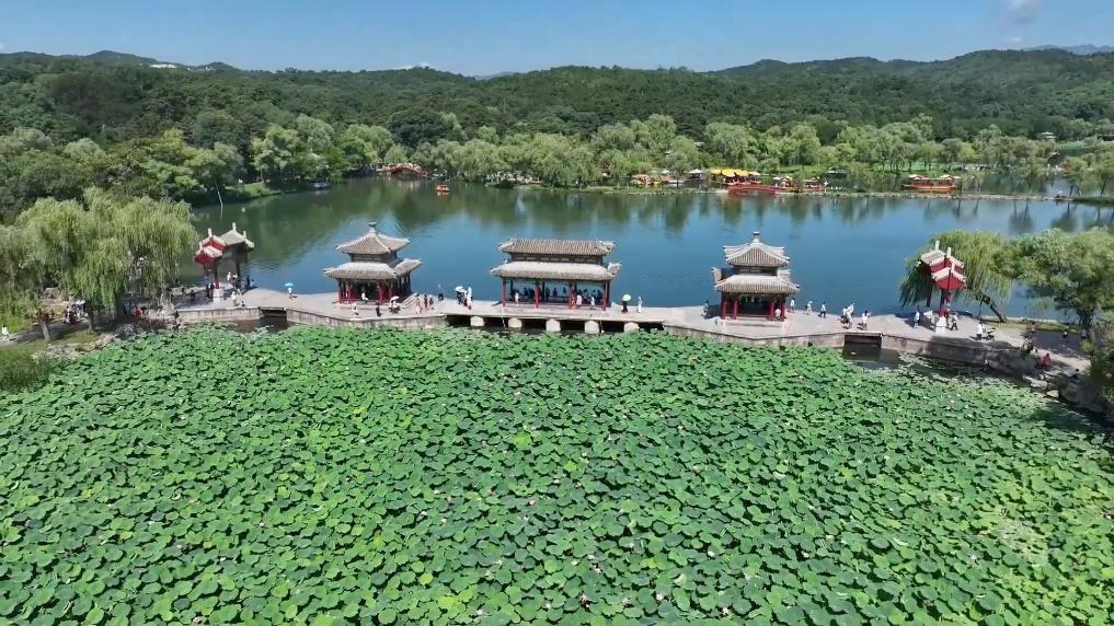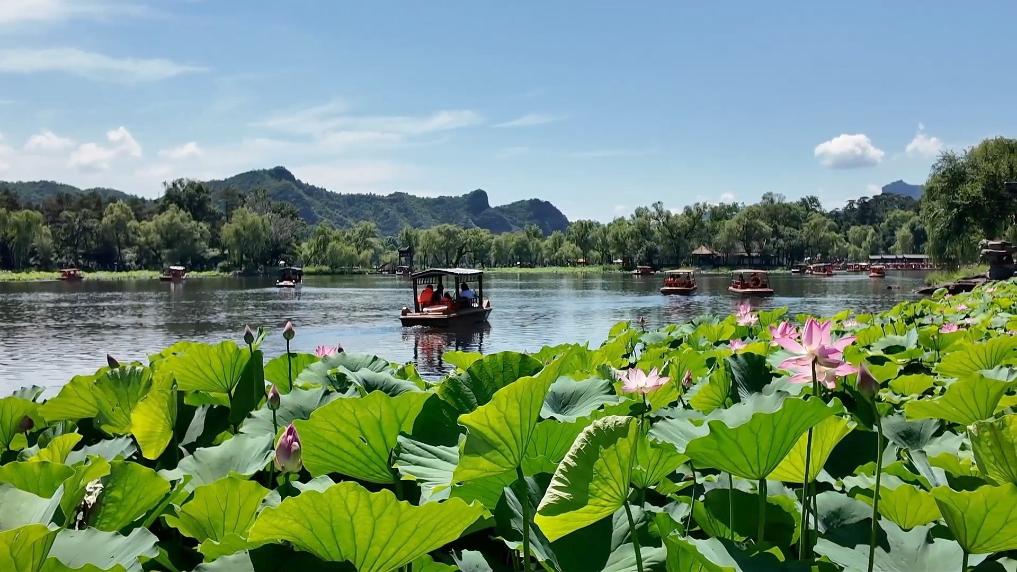 避暑山庄荷花品种丰富。进入暑期,景区迎来旅游旺季,高峰期日游客量可达5万人次。