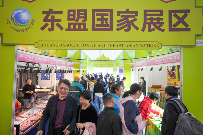 2025年5月18日,人们在第三十四届哈尔滨国际经济贸易洽谈会东盟国家展区选购商品。新华社记者 王建威 摄