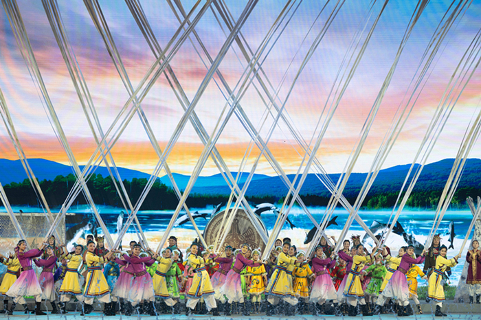 2025年6月26日晚,升级版《遇见·哈尔滨》江上沉浸式演艺在哈尔滨太阳岛风景区开演。新华网发(哈尔滨冰雪大世界供图)