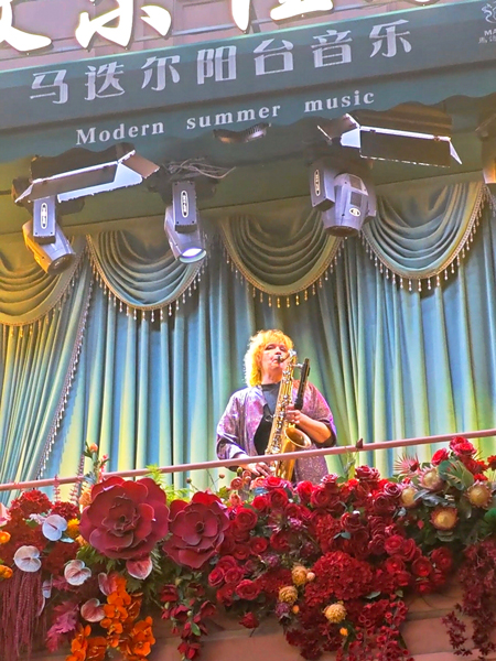2025年7月28日,马迭尔阳台音乐会在中央大街上演。新华网 才萌 摄