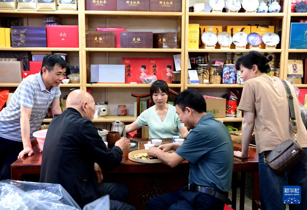58岁的茶农刘金龙打理着300亩茶园,他把直播间搬进茶园,向“家人们”讲解“晒青”“摇青”等制茶工艺,在社交媒体吸引10多万名粉丝,年销售额的近一半来自网络。