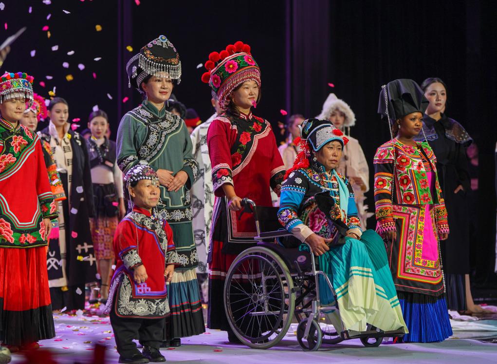 新华社昆明10月19日电(记者彭奕凯、王安浩维)霓虹映照下,楚雄大剧院内织锦流光、彩绣生辉。T台上,融合了彝绣传统纹样与现代剪裁的服饰随灯光流转次第登场,在中外模特的专业演绎下,衣裙间深山彝寨的古老图案在聚光灯下熠熠闪烁。