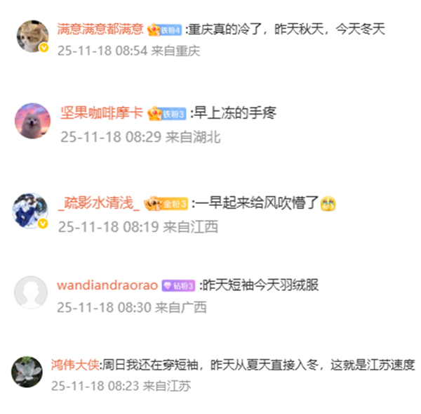 在穿衣方面,胡啸说:“南方湿冷感强,应及时添厚衣;北方温差大、风寒效应明显,建议采用‘洋葱式’穿衣法,注意早晚保暖。总体而言,今冬寒潮和强冷空气过程较多,公众需密切关注气温变化,需及时防范。”