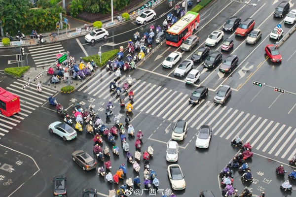 2025年11月18日早晨,南宁降雨降温,寒凉上线。(来源:@广西气象)