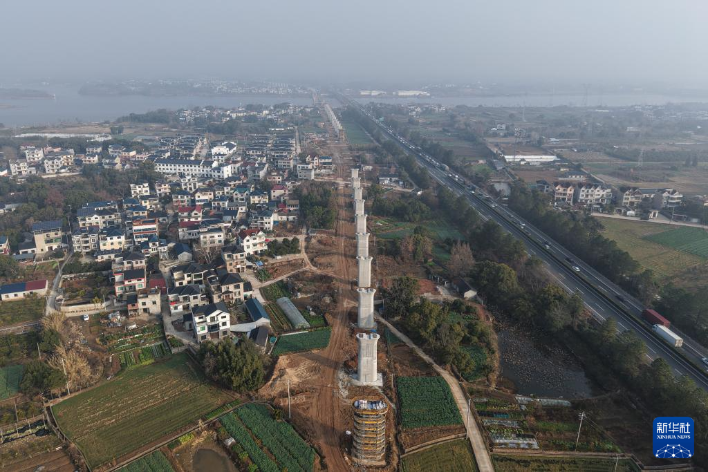 2月3日拍摄的衢丽铁路衢江特大桥建设现场(无人机照片)。新华社记者 黄宗治 摄