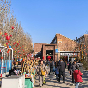 春节期间,棉3创意街区张灯结彩,新春花灯点亮红砖墙面,玩具市集、旧书市集错落排开。文创潮玩、咖啡饮品、特色好物琳琅满目,工业风格街区里弥漫着浓浓烟火气。