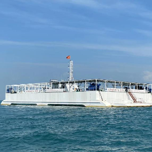 图为半潜式波浪能养殖旅游平台“澎湖号”侧视图。(自然资源部供图)
