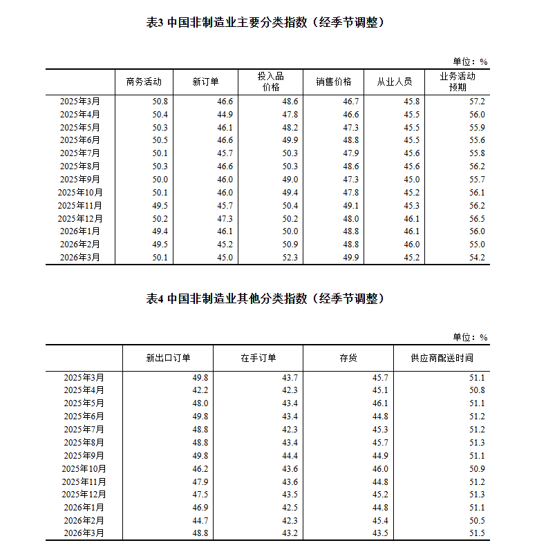 生产指数为51.4%,比上月上升1.8个百分点,表明制造业生产活动加快。