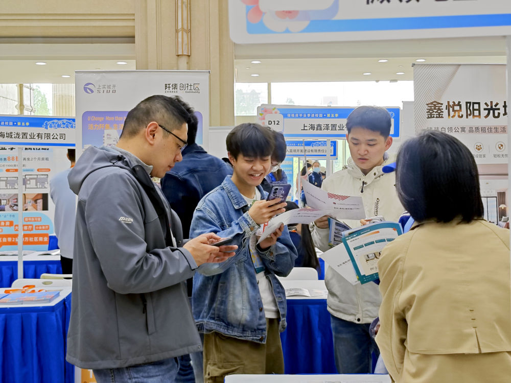 2026年4月15日,在复旦大学举行的“保租房毕业季进校园”(第五季)首场活动现场,人们在了解房源信息。新华社记者 刘颖 摄