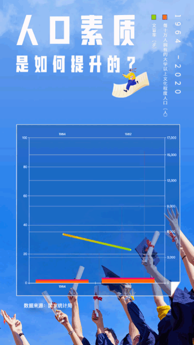 2021年5月11日,全国第七次人口普查数据揭晓——全国人口共141178万人,2020年全年出生人口1200万人,劳动年龄人口8.8亿人,居住在城镇的人口占63.89%,每10万人中拥有大学文化程度的人口为15467人……