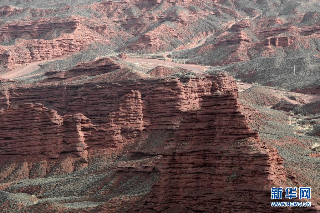 平山湖大峡谷位于甘肃省张掖市甘州区境内,其地质构造是在中生代侏罗纪至新生代第三纪沉积形成的红色岩系,又称“红色砂砾岩”。峡谷以沟壑为基本特征,山势低且平缓,以沙石山为背景,红白和赭红色为主色调,造型奇特,十分壮美。新华社记者 范培珅 摄
