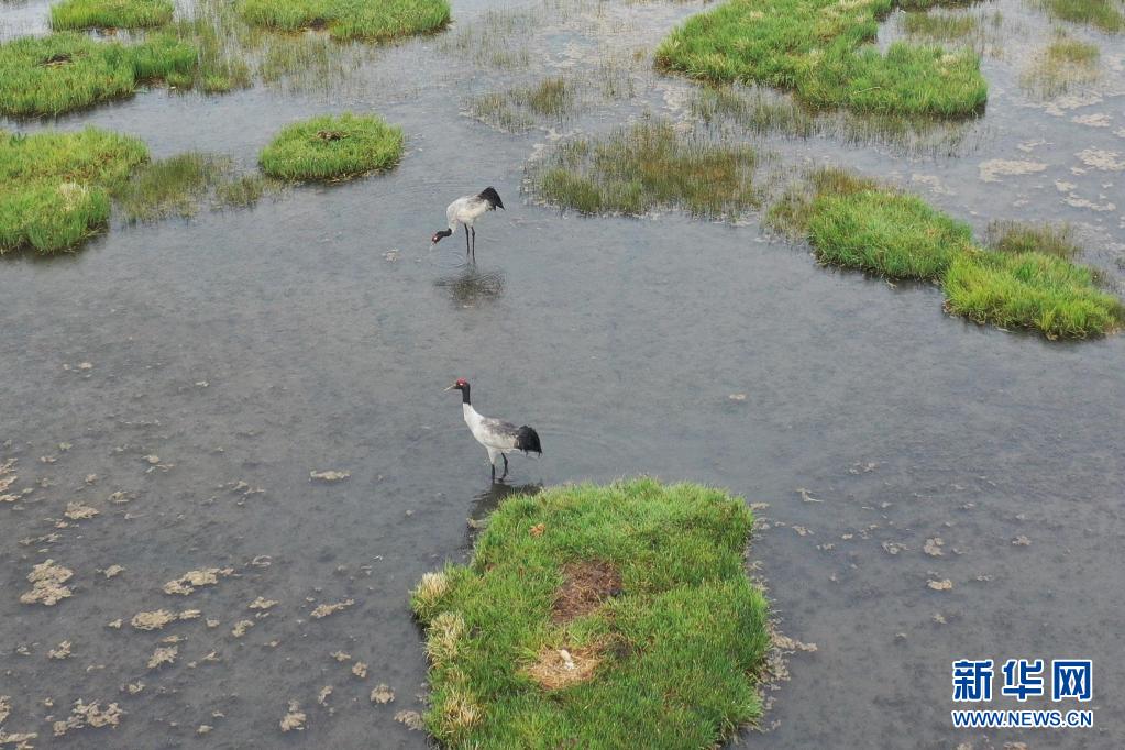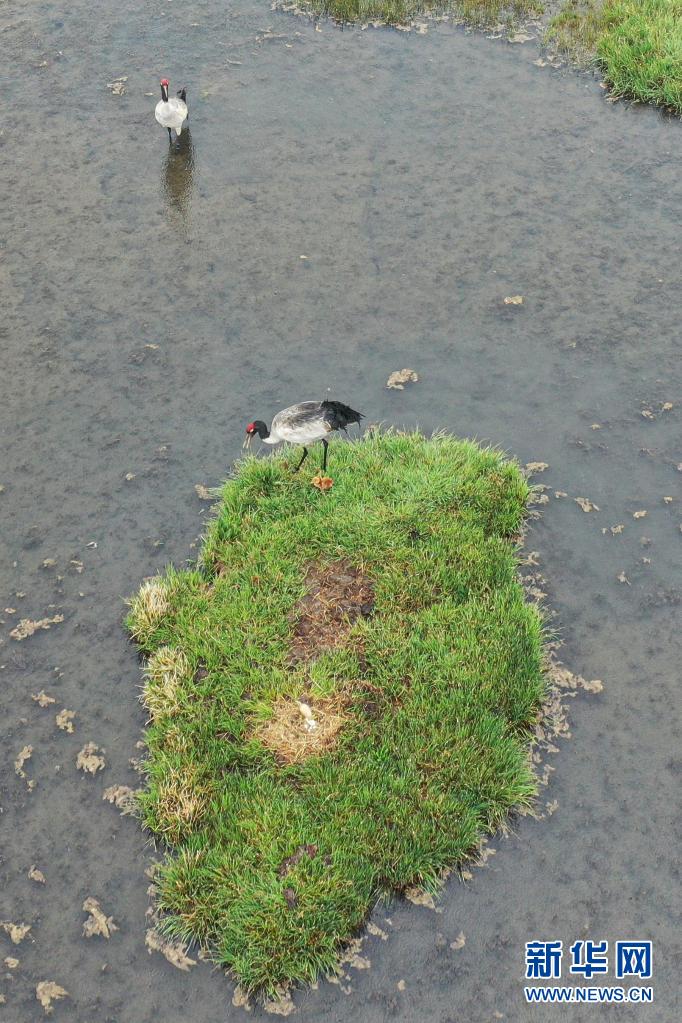 尕海湿地位于青藏高原东北边缘的甘肃省甘南藏族自治州碌曲县境内,是黄河重要支流洮河的发源地和水源涵养地。因其生态优良、气候适宜,近年来成为黑颈鹤、黑鹳、白尾海雕等珍稀候鸟的栖息地。目前正值黑颈鹤等珍稀候鸟的繁殖季节,一批幼鸟即将破壳而出。新华社记者 杜哲宇 摄