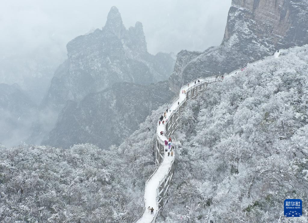 12月27日,游客在湖南省张家界天门山景区观赏游玩(无人机拍摄)。