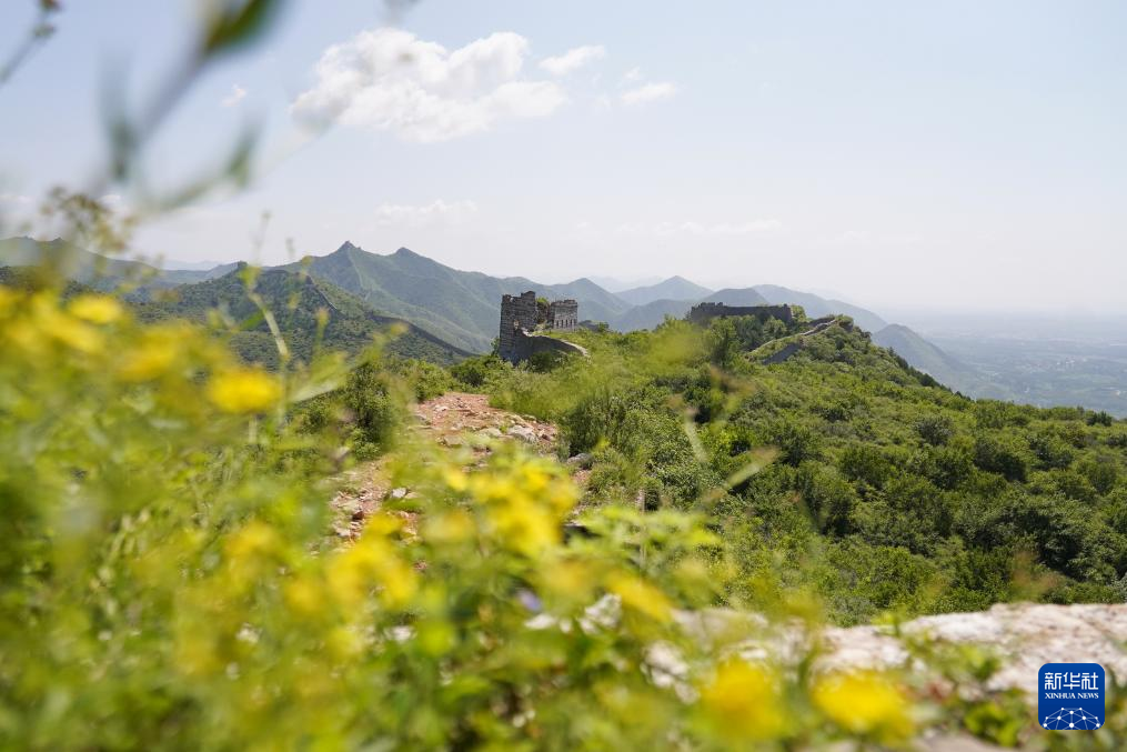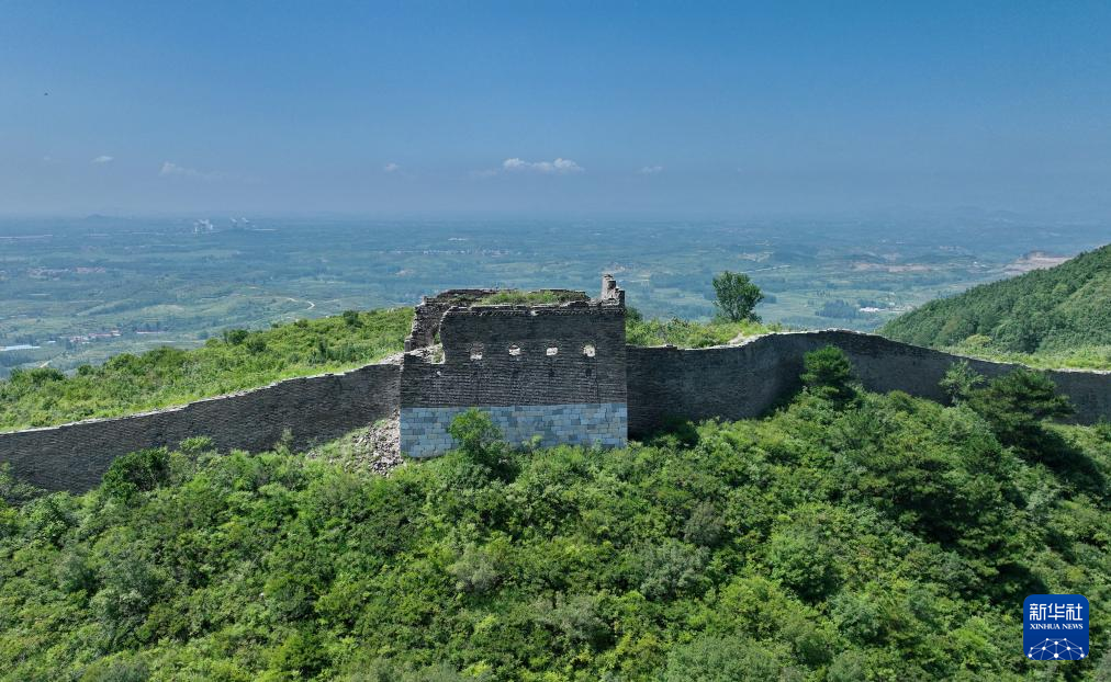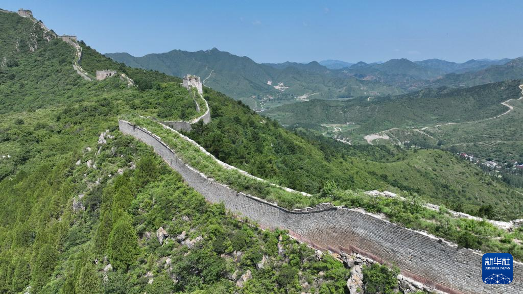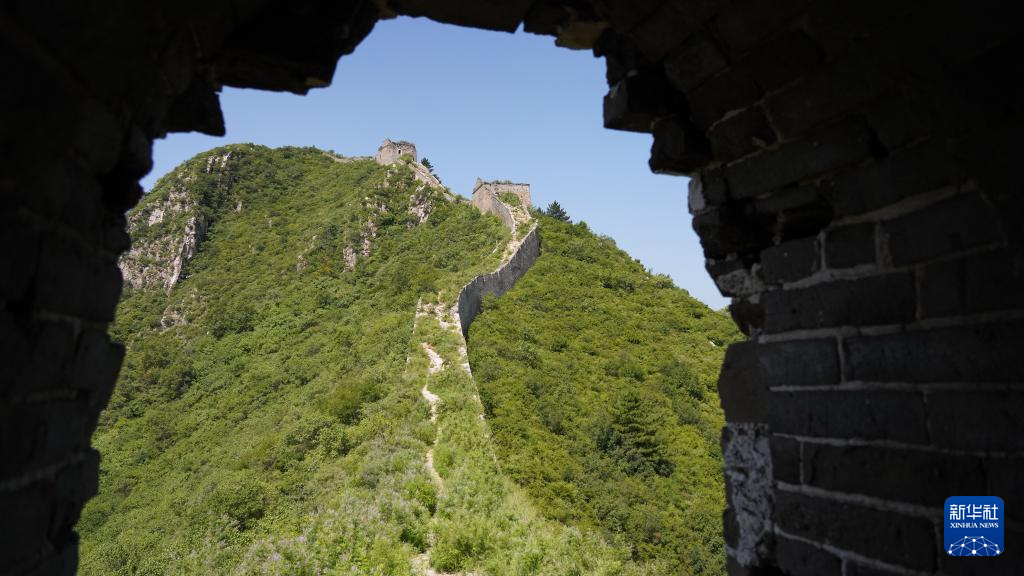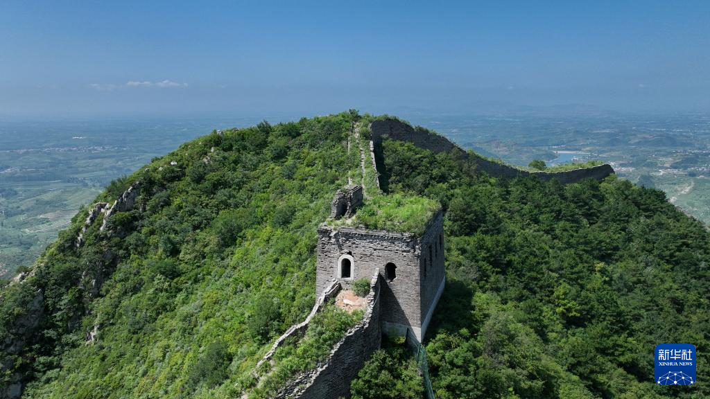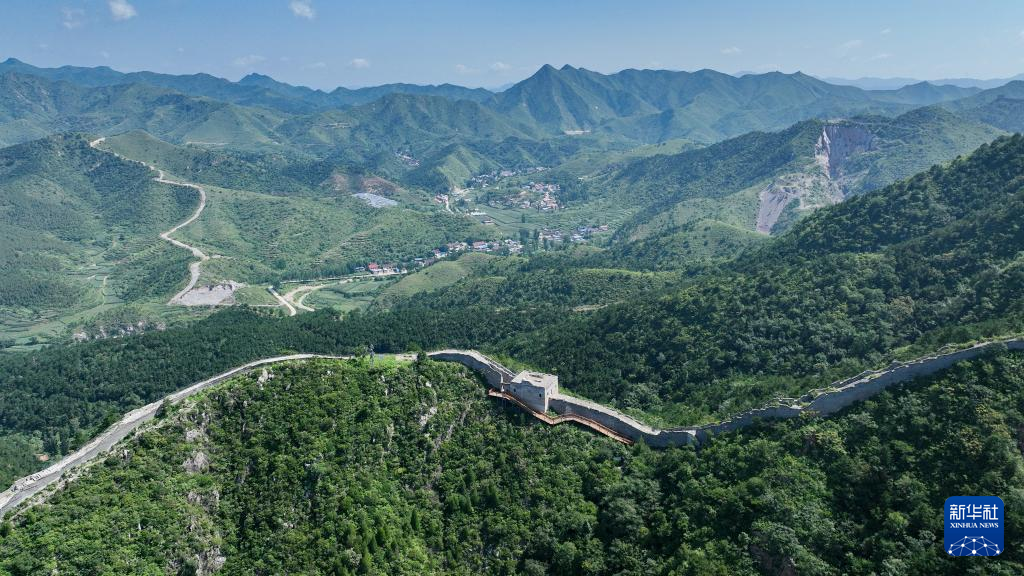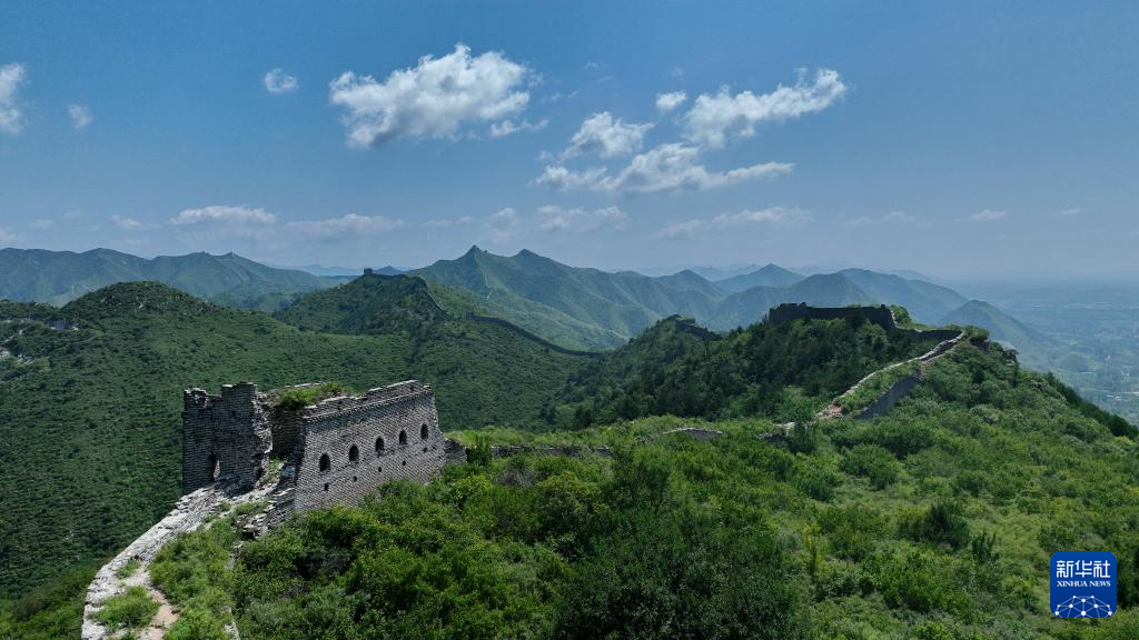 夏日里,河北省迁安市境内的白羊峪长城沿线树木葱郁,盘踞在山巅的古长城在蓝天白云的映衬下愈发壮美。