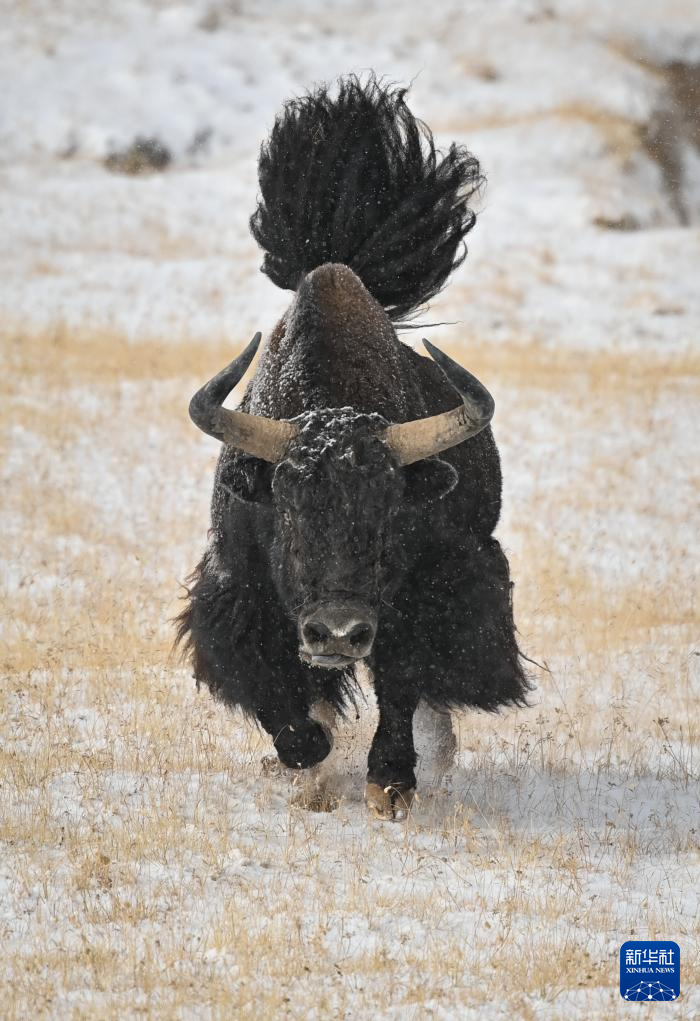 10月16日在阿尔金山国家级自然保护区拍摄的一头发怒的野牦牛。