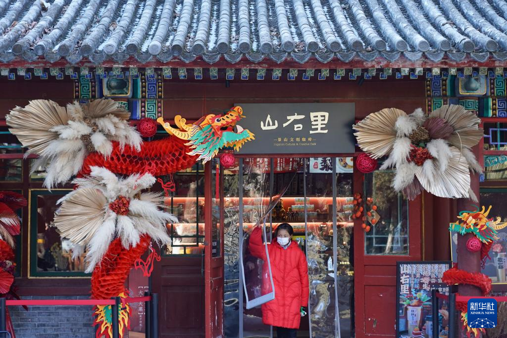 这是在景山公园里一处文创咖啡店拍摄的龙形象节日装饰物(1月23日摄)。