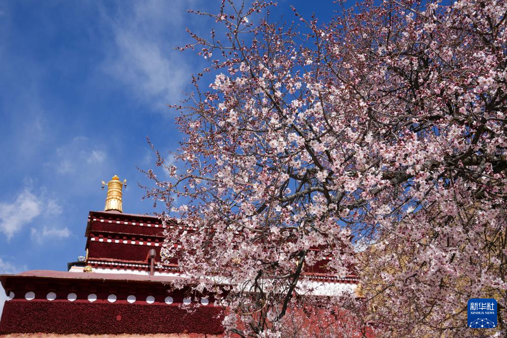 温暖宜人的四月,拉萨充满了盎然的春意。坐落在拉萨北郊的古刹帕崩岗桃花绚烂怒放。