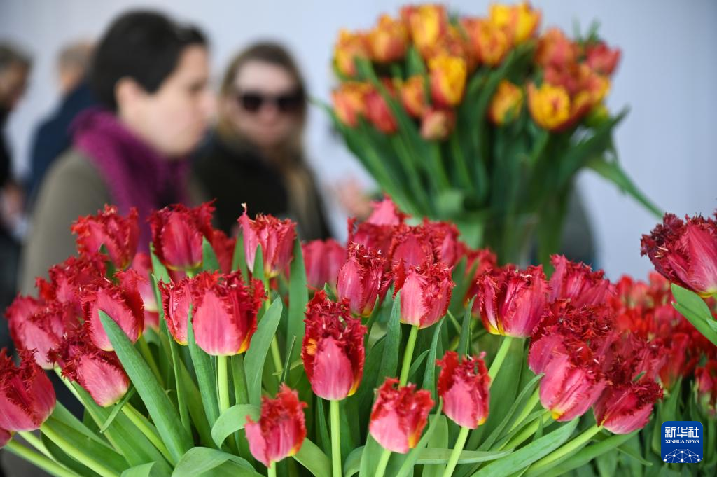 4月5日,人们在波兰首都华沙的维拉诺夫宫参观郁金香展。