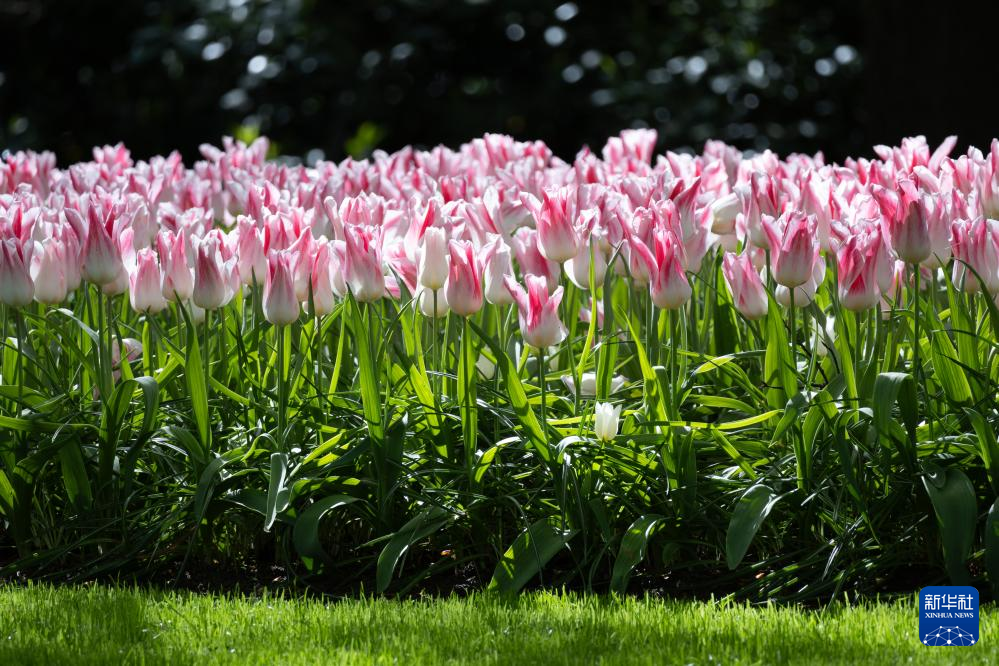 这是4月14日在荷兰利瑟库肯霍夫公园拍摄的郁金香。
