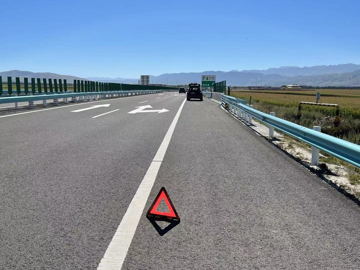笔者租来的越野车燃油用尽,只好停在紧急停车线等待救援。(作者供图)