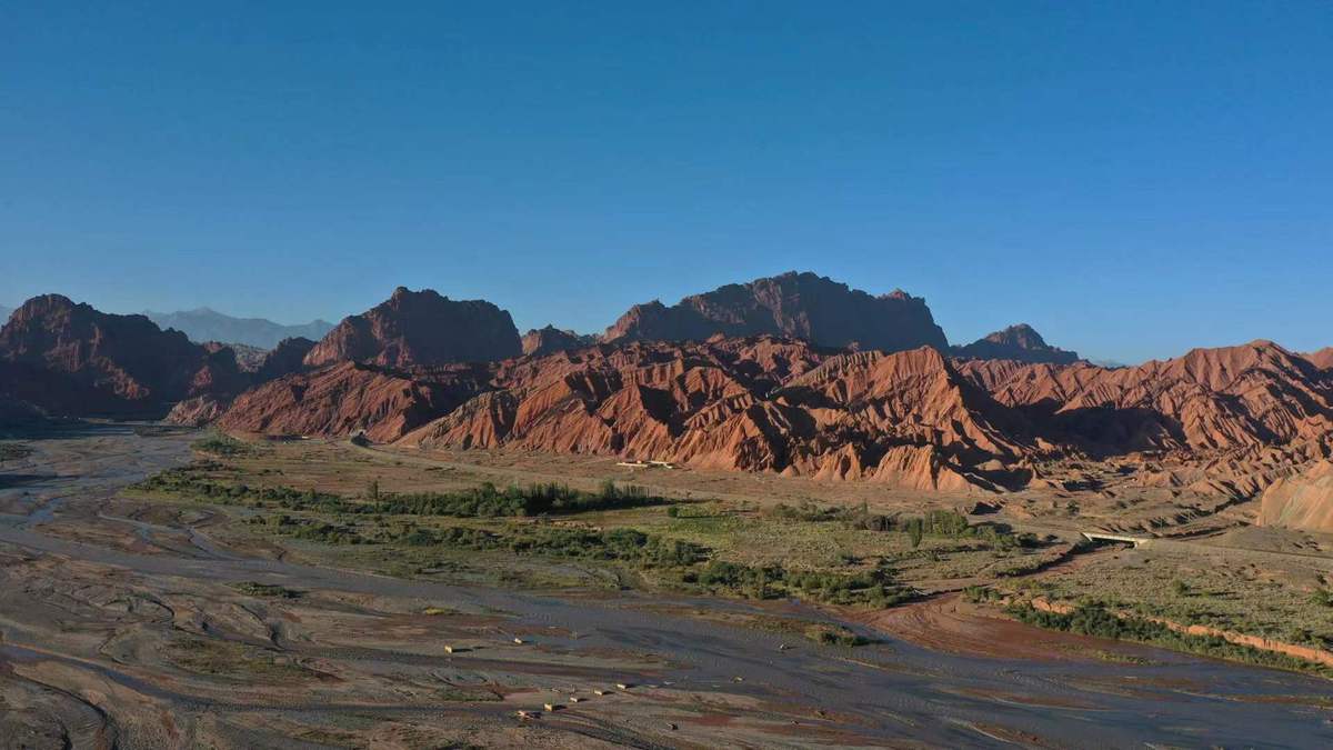 情急之下,笔者致电吴总,吴总拿到笔者的定位后,立马派出救援车。大半个小时后(新疆实在太大,救援需时),救援车到了,本来想用绳子拖我的车进服务区加油,但我的车一点动力也没有,绳子立马断掉。只能用桶装油先为我的车添油,然后再开车到那拉提市内加油(因为那拉提服务区的油站原来还在建,没油供应),尚幸这次能顺利刷出身份证资料,我才能在当天再入山上独库公路,并航拍到库车附近的大拐弯、湖泊和红山石林。