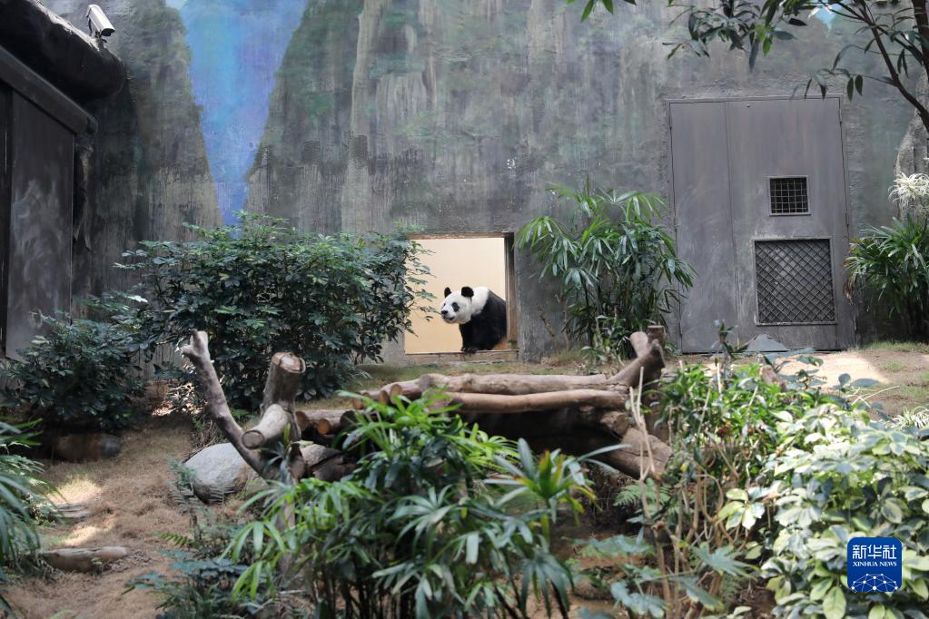 大熊猫“安安”来到香港海洋公园展区(2020年5月11日摄)。新华社记者 吴晓初 摄