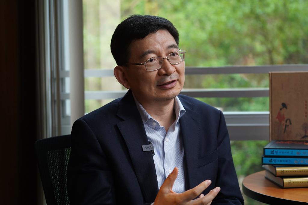 香港商务印书馆总经理兼总编辑毛永波在接受记者采访(4月30日摄)。新华社记者 龙镜伊 摄