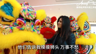 在不远处的尖沙咀海运大厦露天广场,长约28米的“百彩醒狮长廊”展出13个传统中国鼓及18头醒狮,寓意“一生实发”。