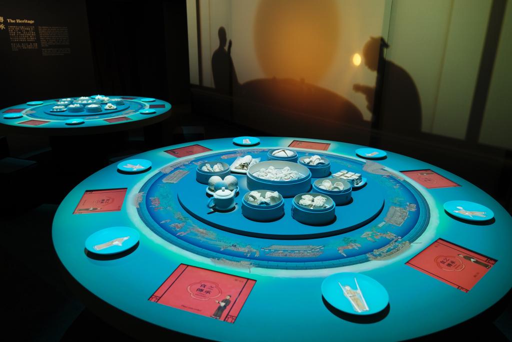 3月18日,在香港故宫文化博物馆,“流动的盛宴——中国饮食文化”特展运用多媒体手法,让观众在虚拟餐桌上探索当代食器与传统饮食文化之间的传承创新。新华社发(王申摄)