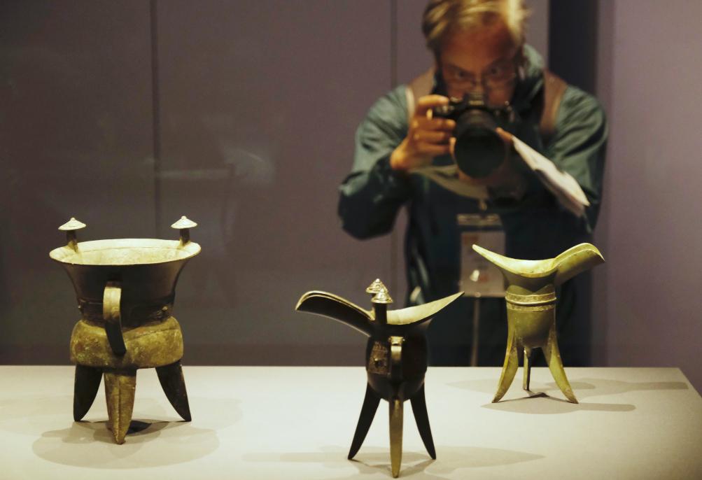 这是3月18日在香港故宫文化博物馆“流动的盛宴——中国饮食文化”特展上拍摄的饮食器皿。新华社发(王申摄)