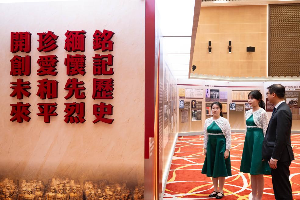 8月25日,澳门学生参观纪念抗战胜利80周年主题展览。新华社发(张金加摄)