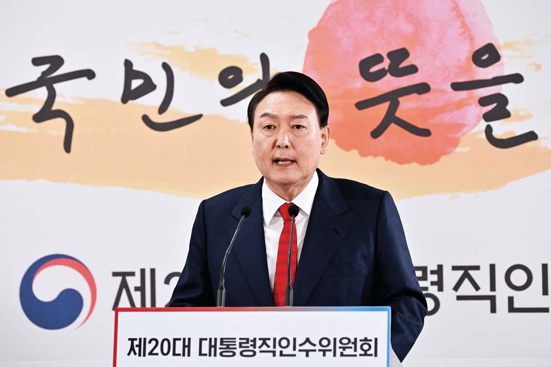 3月20日,韩国当选总统尹锡悦在首尔的记者会上讲话