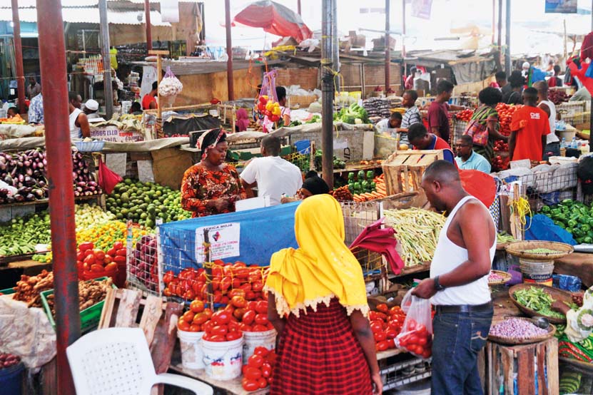 2020年7月4日,人们在坦桑尼亚达累斯萨拉姆的一家市场内购物