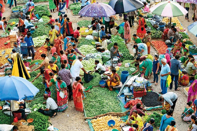 2019年7月8日,人们在印度艾哈迈达巴德的菜市场买菜