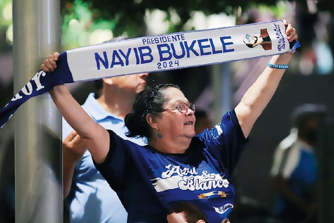 2月4日,布克尔的支持者在萨尔瓦多首都圣萨尔瓦多庆祝