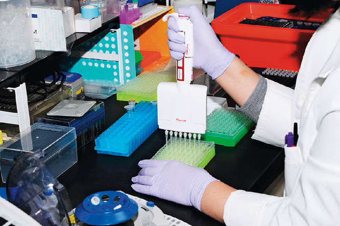 2017年3月1日,在日本京都大学iPS 细胞研究所,一名研究人员添加试验样品