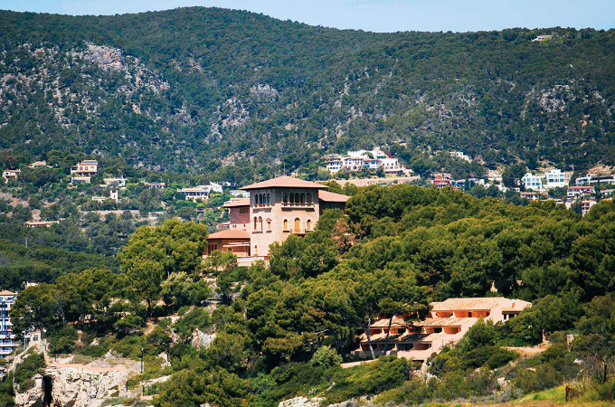 这是在西班牙马略卡岛帕尔马拍摄的西班牙王室的夏季住所玛丽温特宫外景